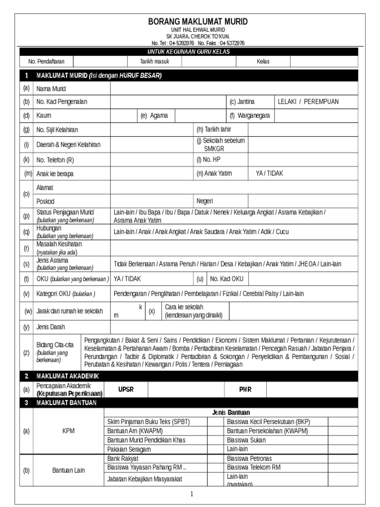 Lampiran A Borang Maklumat Murid Pibg Sk Kampung Jepak Facebook